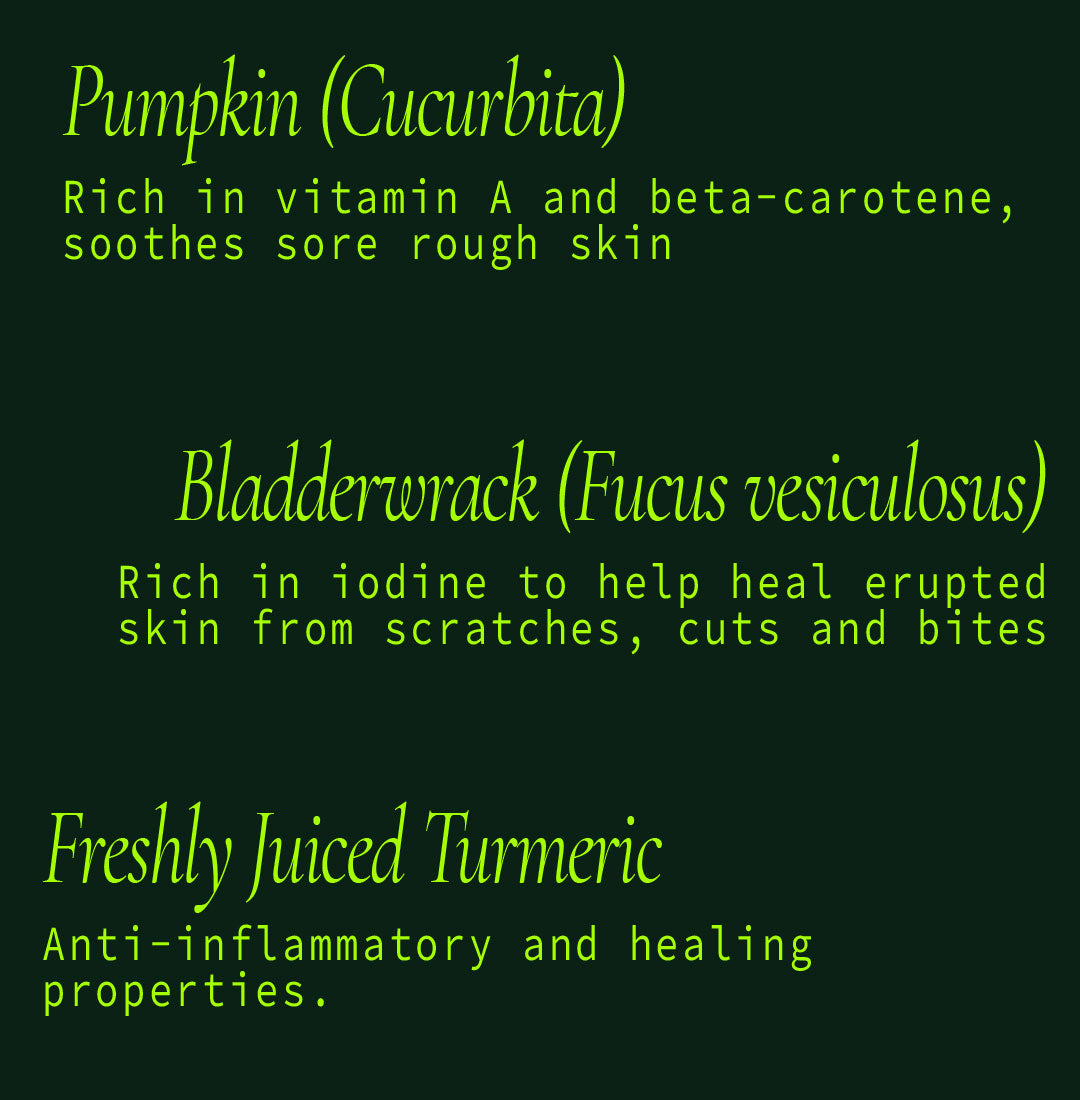 - Bladderwrack, rich in iodine to help heal erupted skin from scratches, cuts and bites. Read more here.